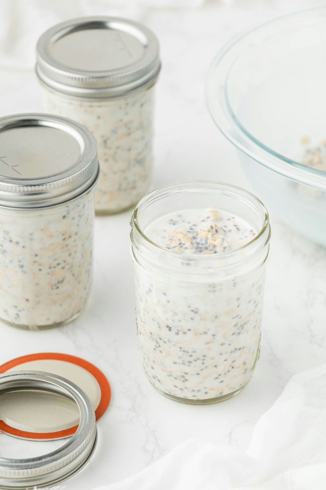 Have you ever tried overnight oats? They are basically just the lazy version of regular oatmeal. Overnight oats are also easy to take on the go, and can be a nice change from hot oatmeal as the weather warms up. In addition, soaking oats can also make them easier to digest.